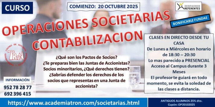 Durante el curso se simula una empresa que comienza su actividad en Junio hasta Diciembre, realizando todo el proceso de contabilización y presentación de los modelos trimestrales que correspondan, así como los resúmenes anuales y el Registro Mercantil de una forma real. Se accederá a la web de la Agencia Tributaria simulando la presentación real de los impuestos.