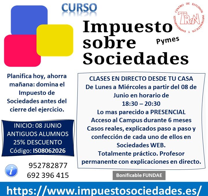 Durante el curso se simula una empresa que comienza su actividad en Junio hasta Diciembre, realizando todo el proceso de contabilización y presentación de los modelos trimestrales que correspondan, así como los resúmenes anuales y el Registro Mercantil de una forma real. Se accederá a la web de la Agencia Tributaria simulando la presentación real de los impuestos.