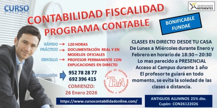 Durante el curso se simula una empresa que comienza su actividad en Junio hasta Diciembre, realizando todo el proceso de contabilización y presentación de los modelos trimestrales que correspondan, así como los resúmenes anuales y el Registro Mercantil de una forma real. Se accederá a la web de la Agencia Tributaria simulando la presentación real de los impuestos.
